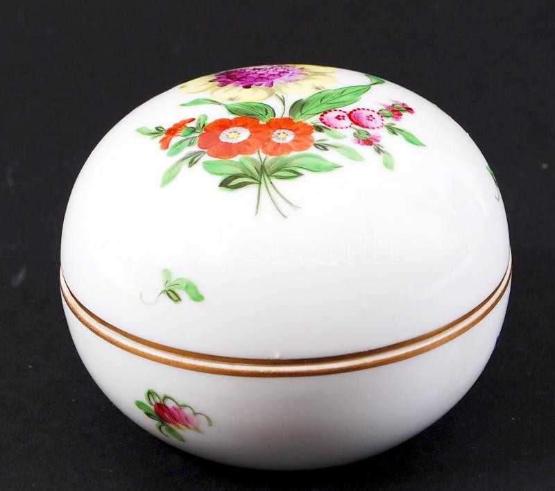 Herendi virágos bonbonier, kézzel festett, jelzett, hibátlan, d:9 cm, ...