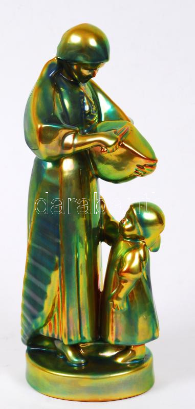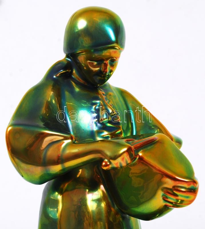 Zsolnay eozin mázas Sinkó kenyérszelő, jelzett, hibátlan, m:30 cm
