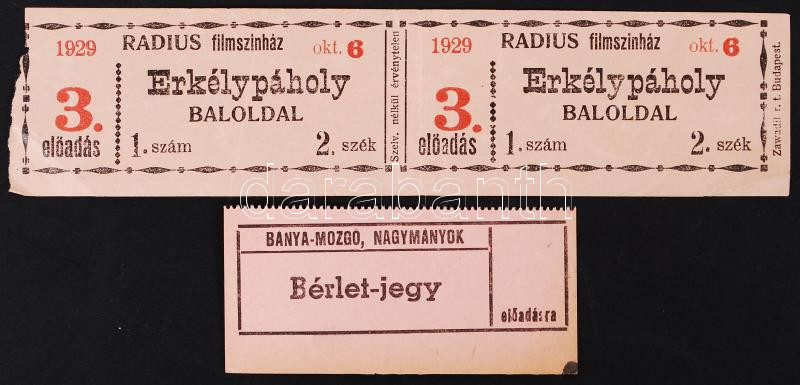 https://www.darabanth.com/en/191-Online-auction/191.0/Other-collectibles/Documents~600030/1929-1950-2db-mozijegy-Radius-Filmszinhaz-Banya-Mozgo-Nagymanyok~II723772