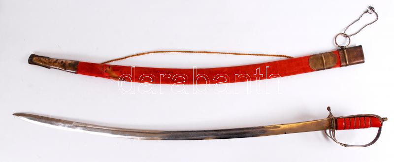 Indiai díszkard, acél penge, réz markolat, bársony borítású hüvelyben,...