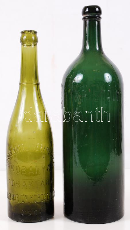 2 db üvegpalack, "Kristáy" felirattal és magyar címerrel, hibátlan, Dreher Antal Körösladány 0,5 l, csorba a pereménél