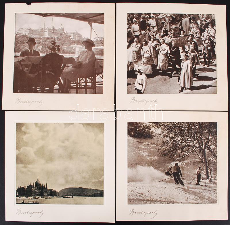 Description: 1938 A szuverén MÁltai Lovagrend kongresszusára érkezettek számára készített kis példányszámú képgyűjtemény BUdapest nevezetességeiről, mappában, aláírva 10 db kép 22x22 cm