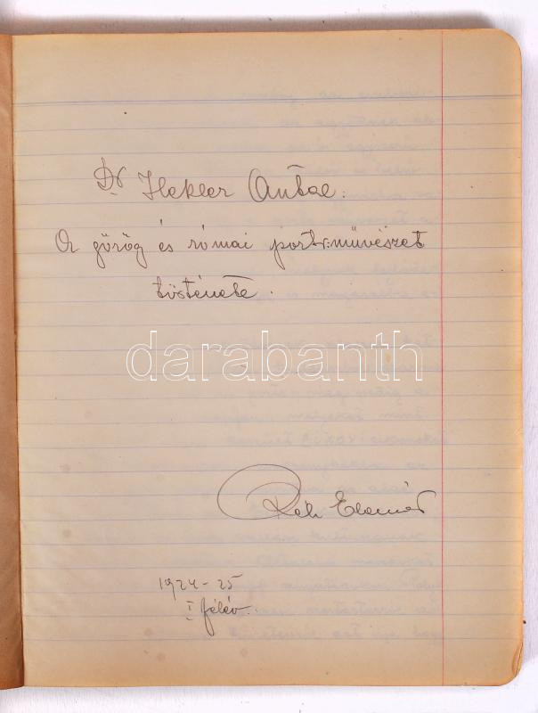 Description: cca 1924 Réh (Révhelyi) Elemér művészettörténész, műemlékvédelmi szakember: Hekler Antal: A görög és római szoborművészet története c. könyvéhez készített kézzel írt jegyzete. kb 100 oldal