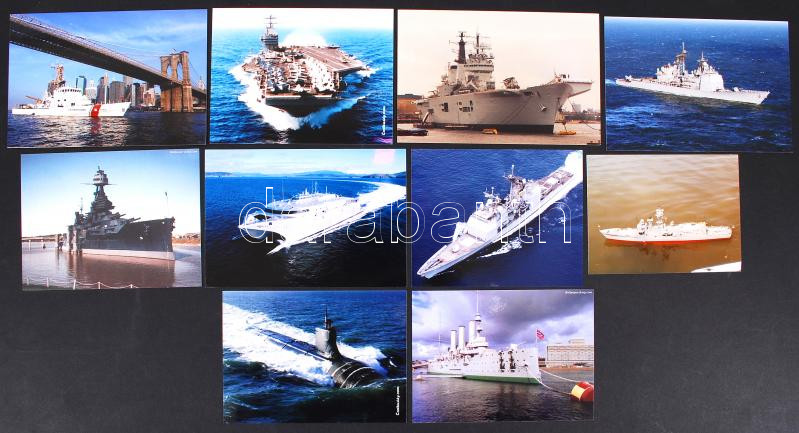 10db színes fotóprint modern hadihajókról, ill. egy hadihajómodellről, klf méretben /