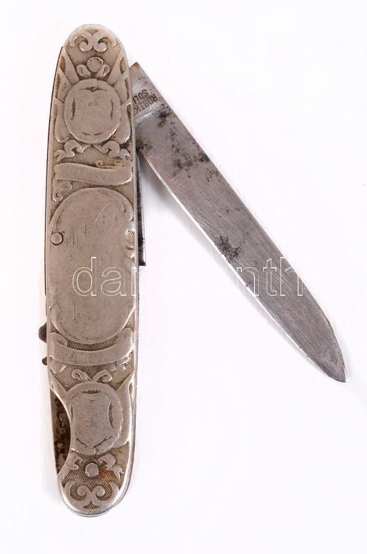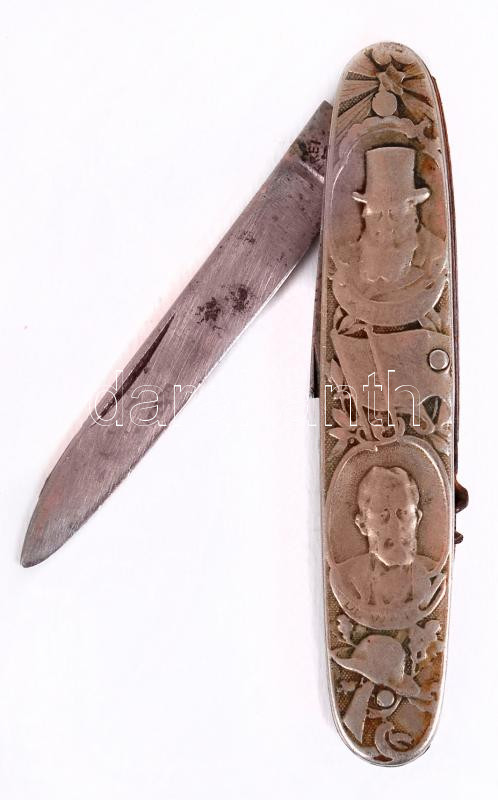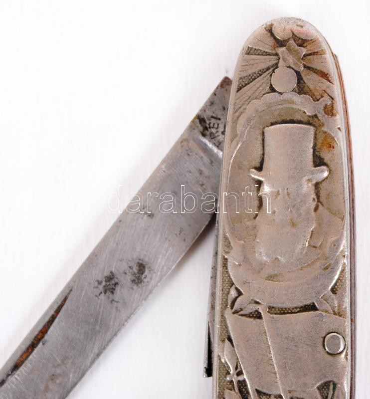 Description: 1900 A búr háború emlékére készített zsebkés Transvaal felirattal és Kruger elnök képével. Dugóhúzó rész törött /