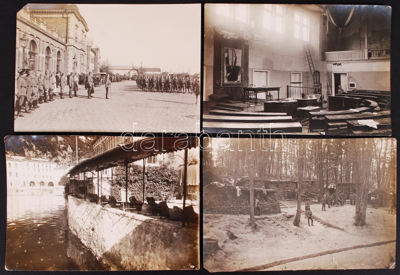 1914-1918 4db katonai fénykép az I. világháborúból, 3 kép feliratozva, az Est c. lap pecsétjével ellátva, 13x18cm.