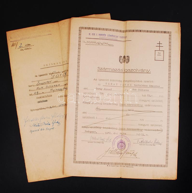 1942 2db származási igazolvány