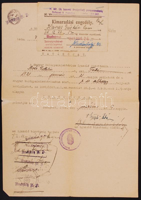 https://www.darabanth.com/en/191-Online-auction/191.0/Other-collectibles/Military~600005/1946-Kimaradasi-engedely~II721445