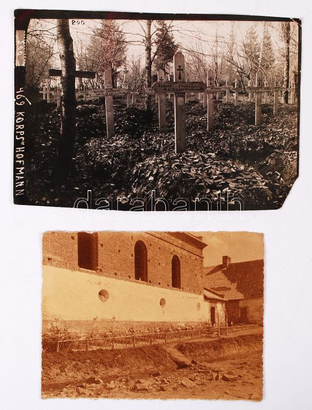 Description: cca 1916 A Hoffmann-hadtest által kézsített érdekes fotók: Sokolov magyar honvédek, köztök a 309-esek sírjai 2 fotó /