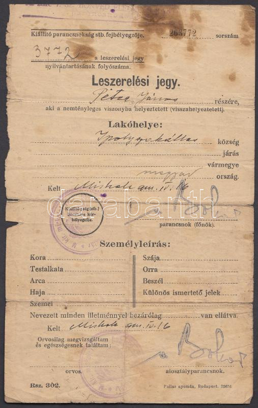 https://www.darabanth.com/en/191-Online-auction/191.0/Other-collectibles/Military~600005/cca-1918-Leszerelesi-jegy~II721462