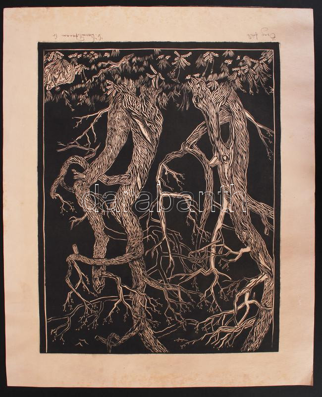 Dr. Székelyudvarhelyi Kováts Ferenc (1913-1997): Öreg fák. Linómetszet...