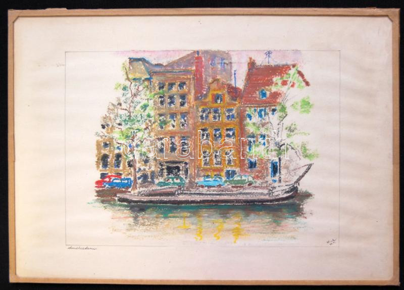 Hoch István (építész): Amsterdam, pasztell, papír, üvegezett karton, j...