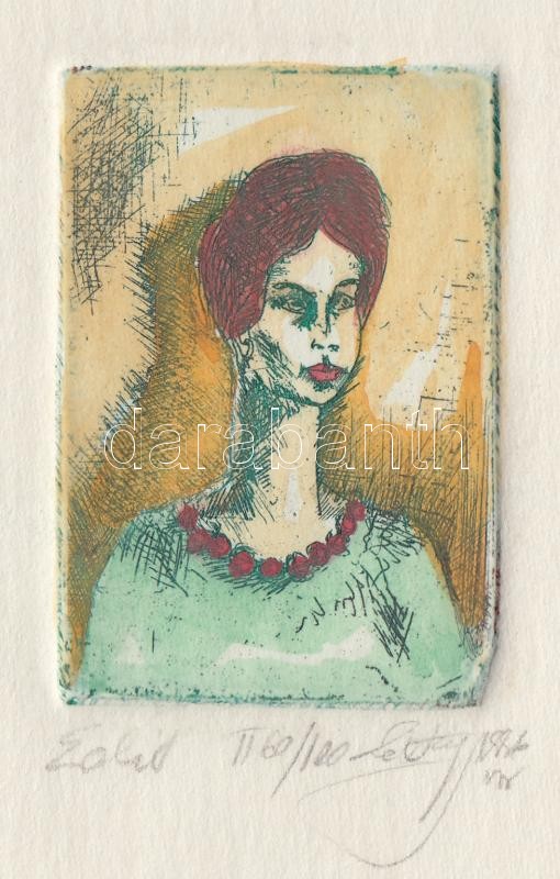 Olvashatatlan jelzéssel: Edit. Színezett rézkarc 60/100, papír, 4×3 cm