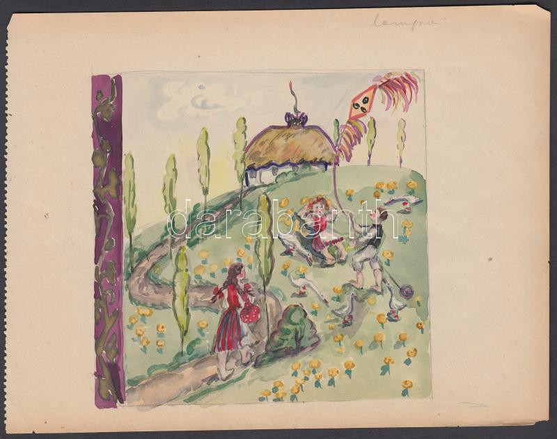 Szitás Erzsébet (1915-2005): Sárkányeregető. Akvarell, papír, jelzés n...