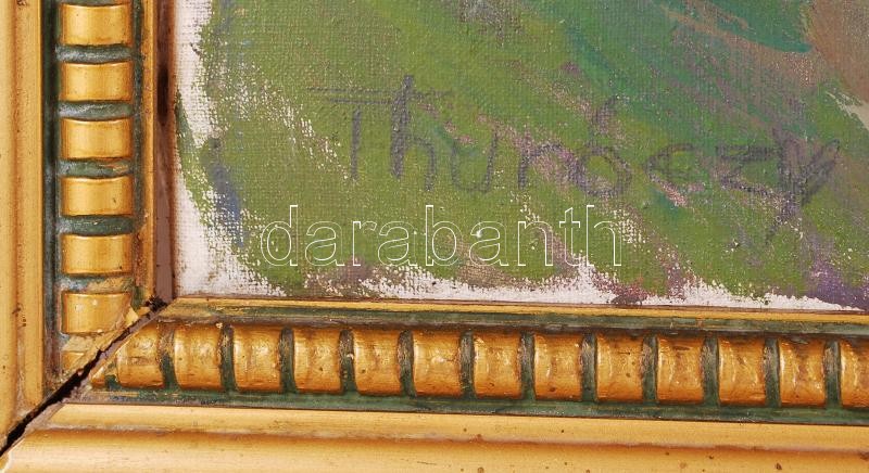 Thuróczy Zoltán (1935-): Falusi jelenet. Olaj, vászon, antik sérült ke...