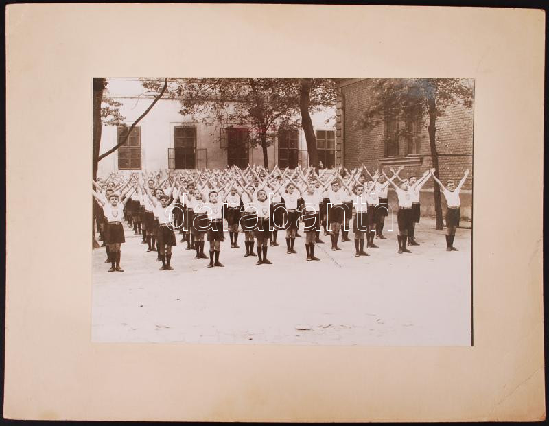 1925-1930 Torna óra az iskola udvarán (képméret: 16x23 cm; karton méret: 25x32 cm