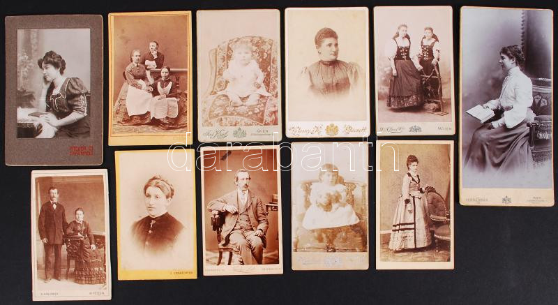 Cca 1890 10 db keményhátú családi és portré fotók, 11×6 cm