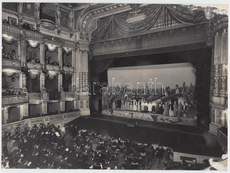 Description: cca 1950 Seidner Zoltán (1896-1960) vintage felvétele Illyés Gyula Ozorai példa című művének színpadi változatáról, hátoldalán pecséttel jelezett, 18x24cm