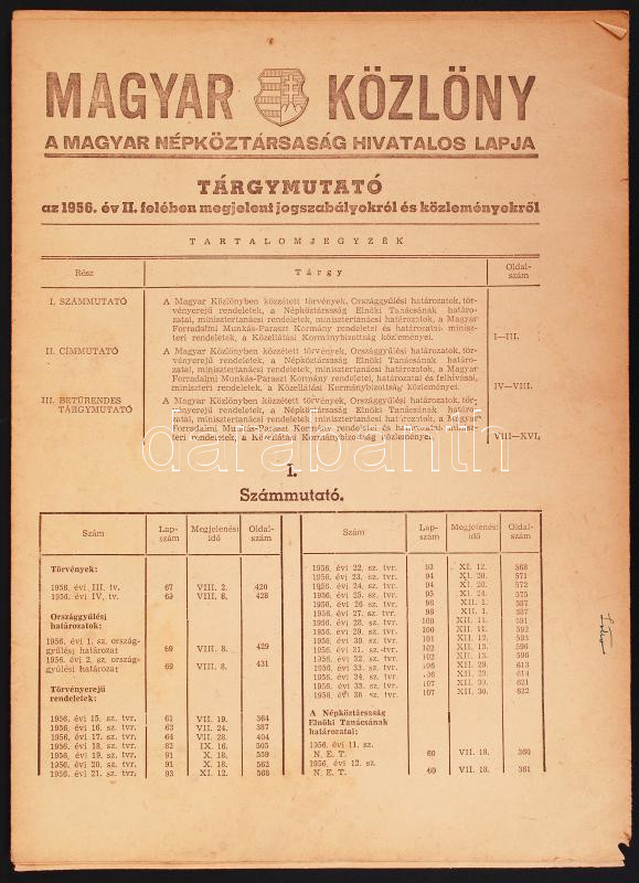 https://www.darabanth.com/en/191-Online-auction/191.0/Other-collectibles/Printed-Materials~600008/1957-marcius-Magyar-Kozlony-targymutatoja-Kossuth-cimerrel-az-1956-os-torvenyekkel~II723651