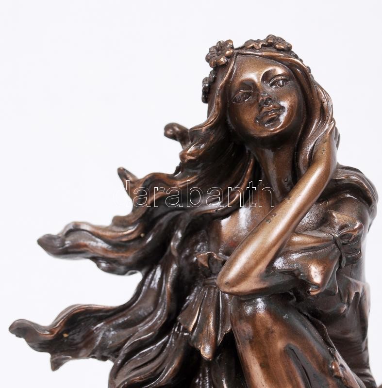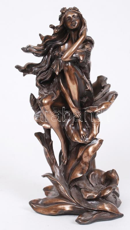 Virágon ülő. Festett gyanta, hátán sérült, m:27 cm