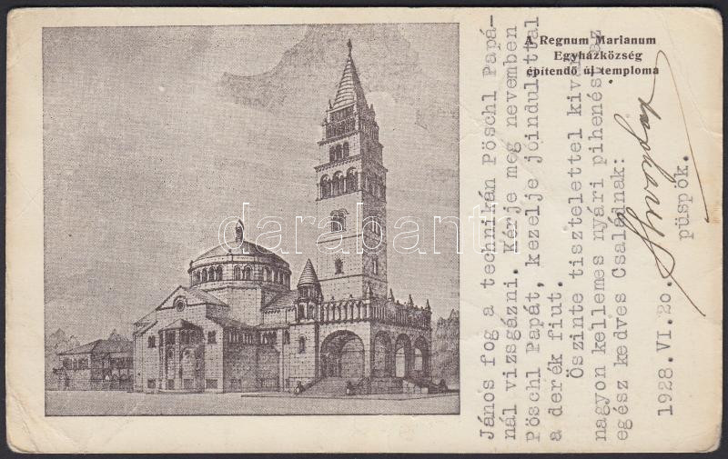 1928 Shvoy Lajos Székesfehérvári püspök aláírt képeslapja