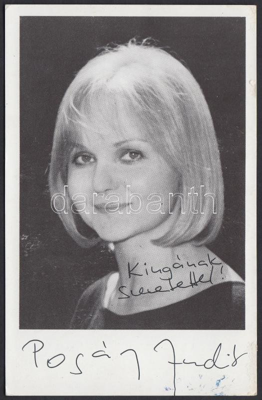 Pogány Judit dedikált fotója, 14×9 cm