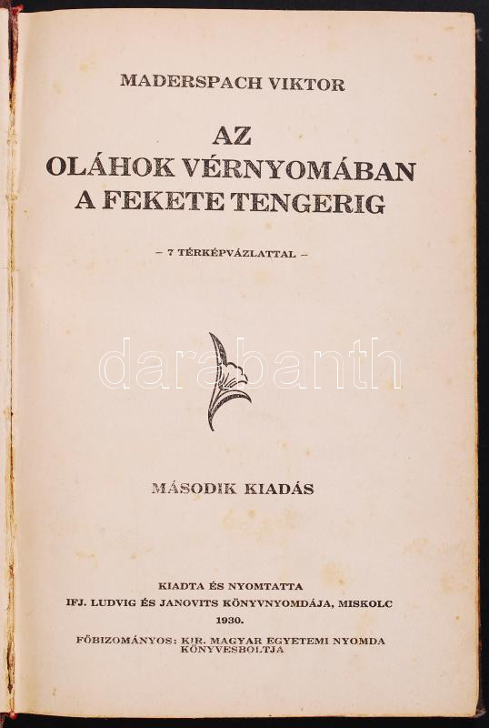 1930 Maderspach Viktor: Az oláhok vérnyomában a Fekete tengerig. 7 tér... https://www.darabanth.com/en/192-Online-auction/192.0/Other-collectibles/Books-History~2000033/1930-Maderspach-Viktor-Az-olahok-vernyomaban-a-Fekete-tengerig-7-terkepvazlattal-masodik-k~II726395