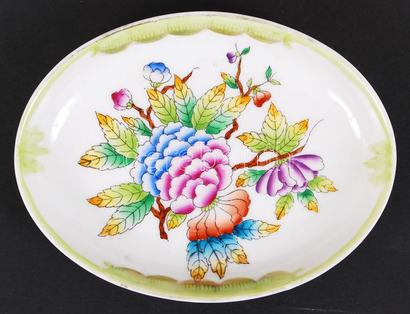 Viktória mintás, kézzel festett és aranyozott, jelzett Herendi tálka /...