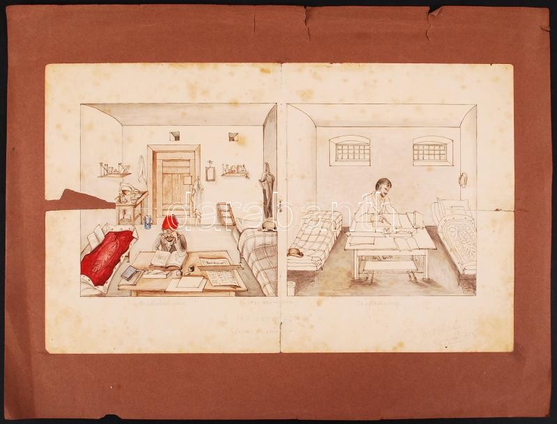 1891 Képek a fogházból. Valószínűleg egy egykori szabadságharcos emlékei alapján készült rajza Fehér Zs. jelzéssel 34x22 cm
