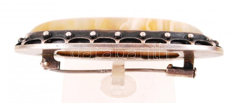 Ezüst (Ag.) kitüző csiszolt kővel, jelzett, bruttó: 17 g, h:5 cm/ Silver pin up