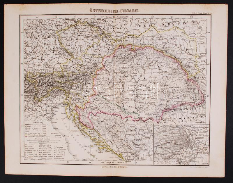 Austria-Hungary, colored etching, Stielers Schul-Atlas No. 19, Gotha, Justus Perthes, 24x29cm