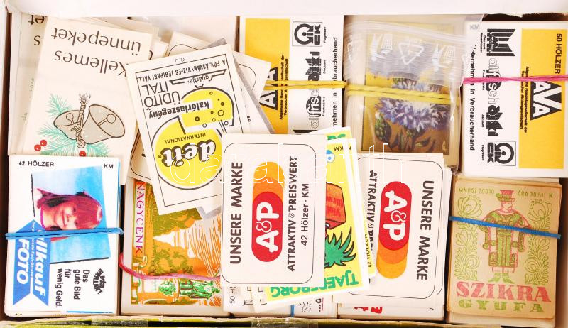 cca 4000db vegyes magyar és külföldi gyufacímke dobozban