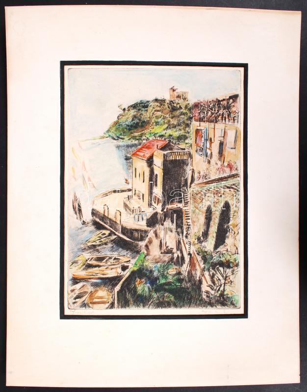 Aszódi Weil Erzsébet (1901-1976): Possilipo. Színezett rézkarc, papír,...