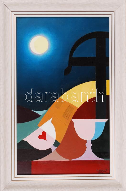 Lukács János (1952): Kései üzenet. Olaj, farost, jelzett, keretben, 58...