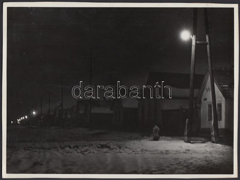 cca 1950 Ismeretlen szerző: Falusi téli este. Éjszakai felvétel, 18x24cm