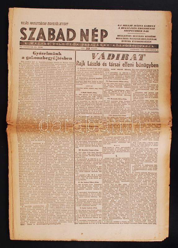 https://www.darabanth.com/en/192-Online-auction/192.0/Other-collectibles/Printed-Materials~2000023/1949-09-11-25-A-Rajk-per-a-Szabad-Nep-hasabjain-7-szam~II727249