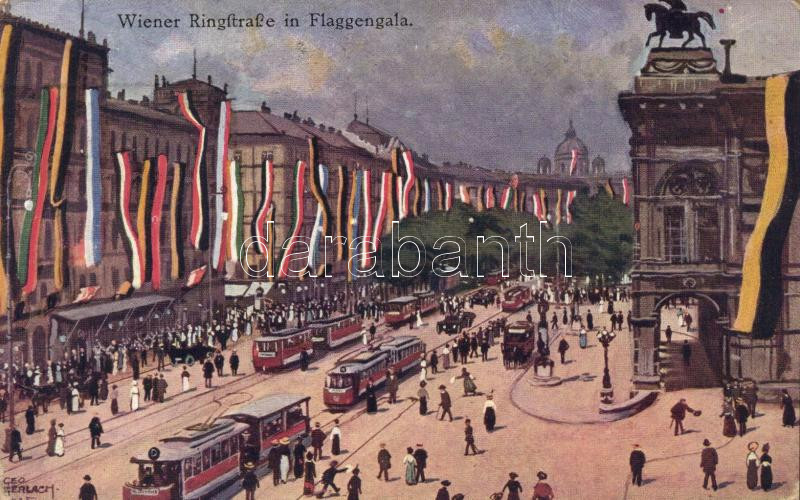 Vienna, Ringstrasse, Flag gala, artist signed (EB)