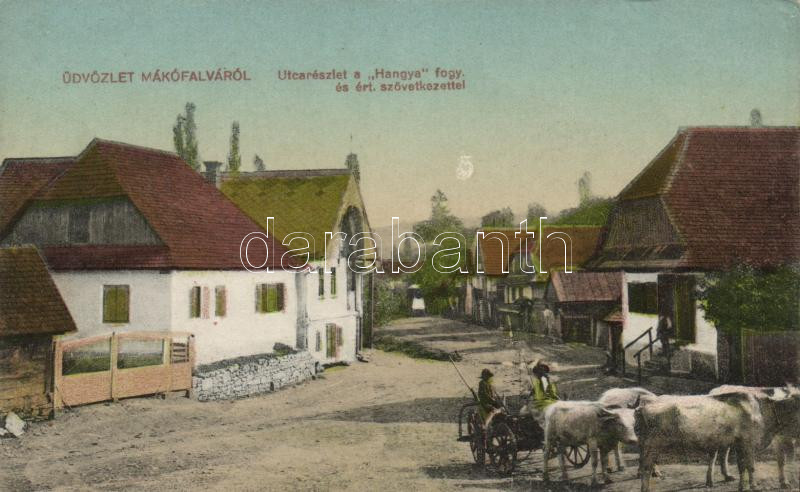 Mákófalva Hangya, ökrös szekér / street, ox cart