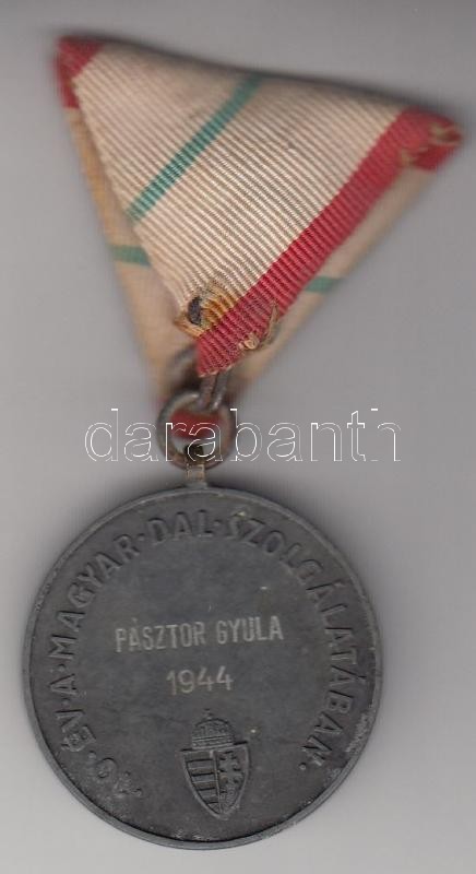 1944. "Magyar Dalos Egyesületek Országos Szövetsége (MDEOSZ) / 10 Év A Magyar Dal Szolgálatában" medál mellszalagon T:2-