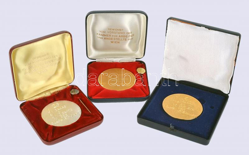 Ausztria ~1980. Nemzetgazdaság Szolgálatában" 25 éve; 35 éve; 40 éve; 3db kitüntető érem dísztokban, kettő kitűzővel T:1