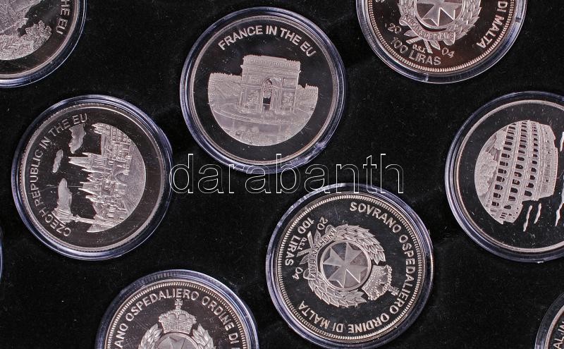 Description: Máltai Lovagrend 2004. 100L "Csatlakozás az EU-hoz" 28db klf emlékpénz, komplett szettben és tartóban T:PP Tanúsítvánnyal!