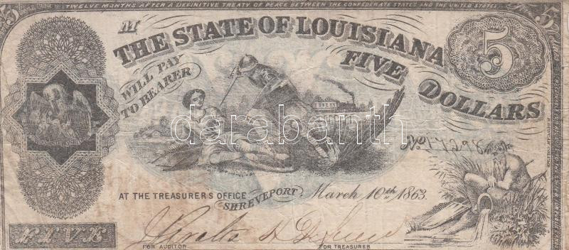 Amerikai Egyesült Államok / Louisiana / Polgárháború 1863. március 10. 5$ T:III