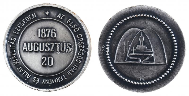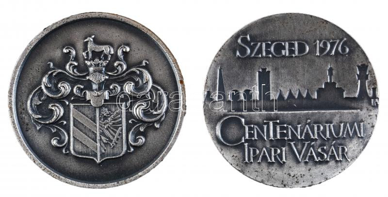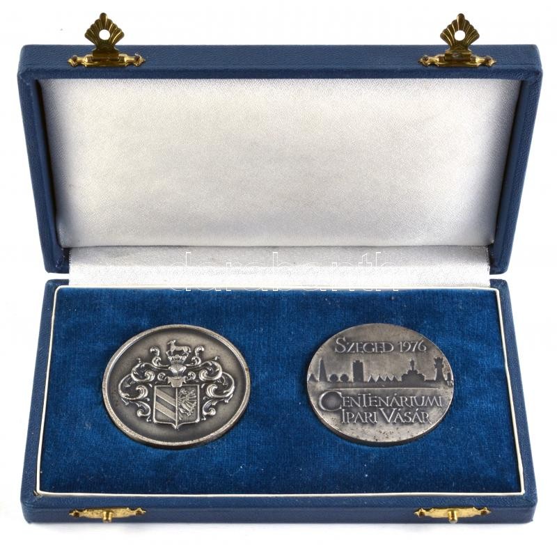 1876. "Az Első Országos Ipar Termény és Állat Kiállítás Szegeden" + 1976. Szeged "Centenáriumi Ipari Vásár" fém emlékérem pár (50mm) dísztokban T:2