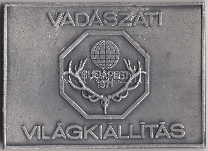 1971. "Vadászati Világkiállítás - Budapest" nagyalakú szögletes fém emlékplakett T:2
