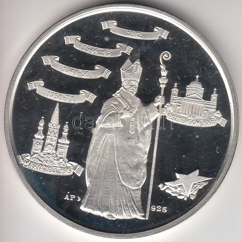 Bognár György (1944-) 1991. "Mindszenty József Bíboros Hercegprímás 1892-1975" Ag emlékérem (31,1g/0.925/42,5mm) dísztokban tanúsítvánnyal T:PP
