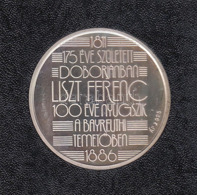 Description: Fülöp Zoltán (1951-) 1986. "175 éve született Doborjánban Liszt Ferenc - 100 éve nyugszik a Bayreuthi temetőben" Ag emlékérem ÁP dísztokban és tanúsítvánnyal (12g/0.925/32mm) T:PP Csak 3000db!