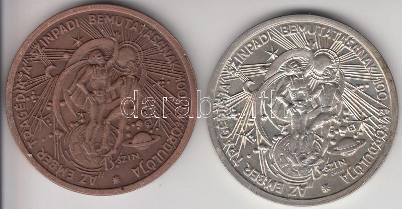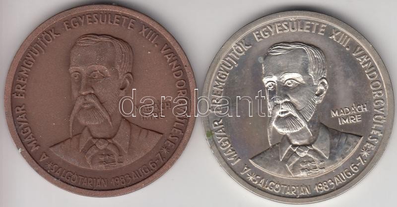 Description: Garamkeszi János (1936-) / ÁPV 1983. "MÉE XIII. Vándorgyűlése Salgótarján / Madách Imre - Az Ember tragédiája" Ag + Br emlékérem pár (35.04g/0.640/42.5mm) T:1-,2
