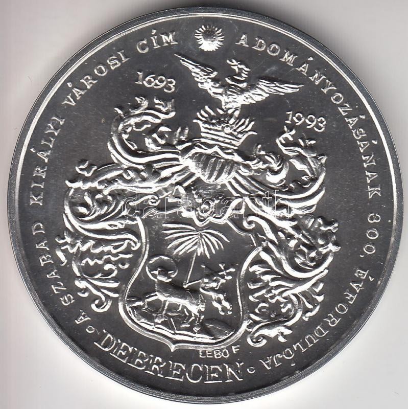 Lebó Ferenc (1960-) 1993. "Debrecen Szabad Királyi Város Emlékérem" Ag emlékérem (31.1g/0.925/42,5mm) dísztokban tanúsítvánnyal T:PP Csak 300db