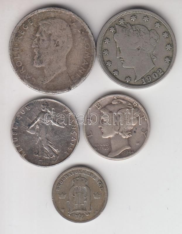5db klf külföldi ezüstpénz tétel T:vegyes