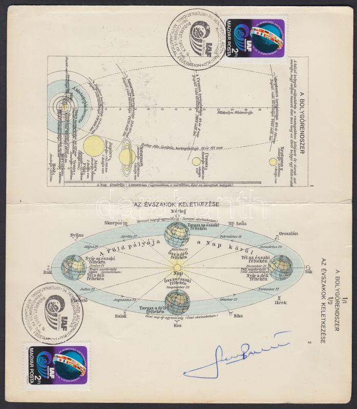 A bolygórendszer rajza rajta Farkas Bertalan aláírásával és IAF alkalm...